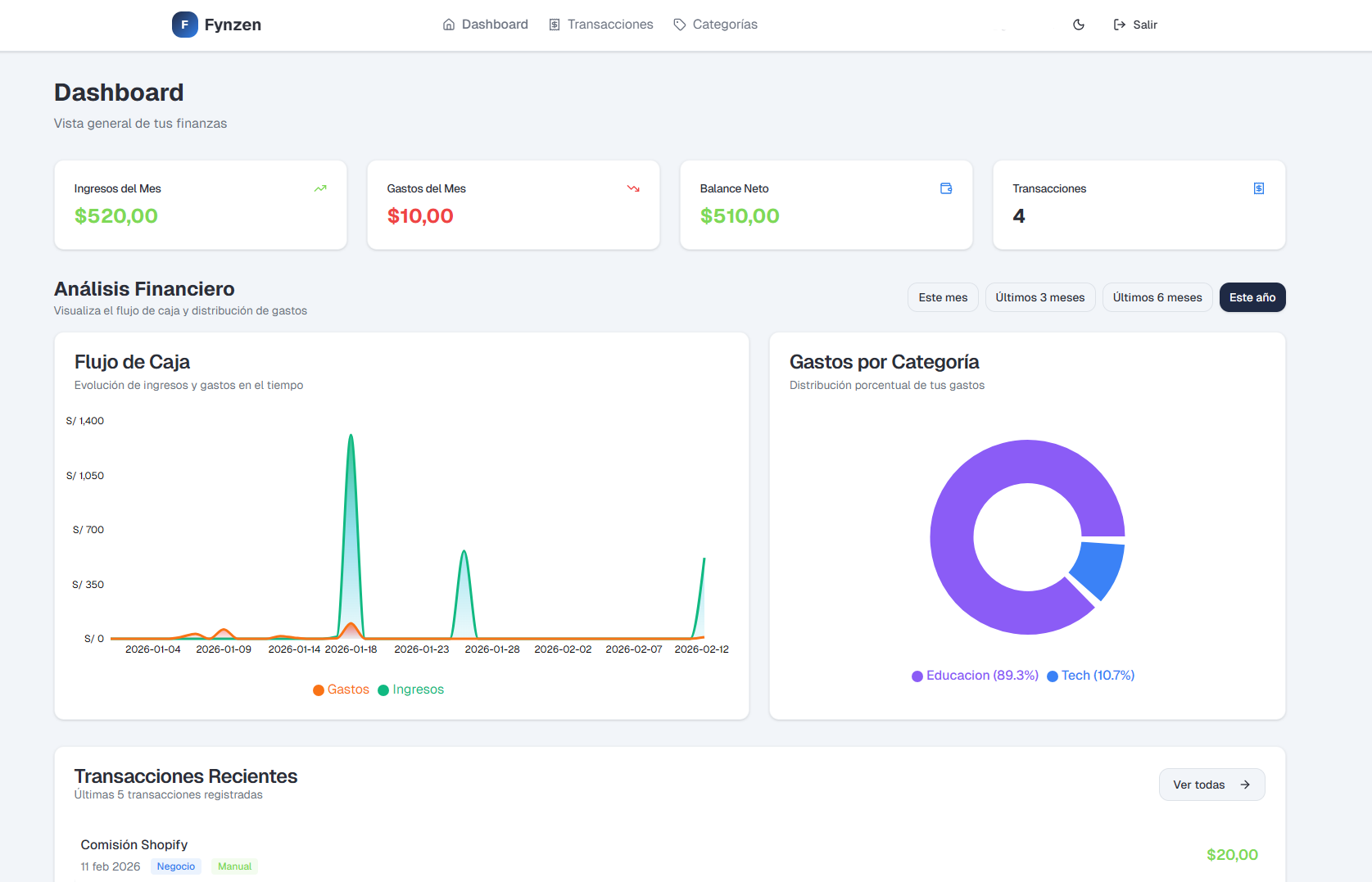 Plataforma fintech especializa en el registro de transacciones y seguimiento de salud financiera.